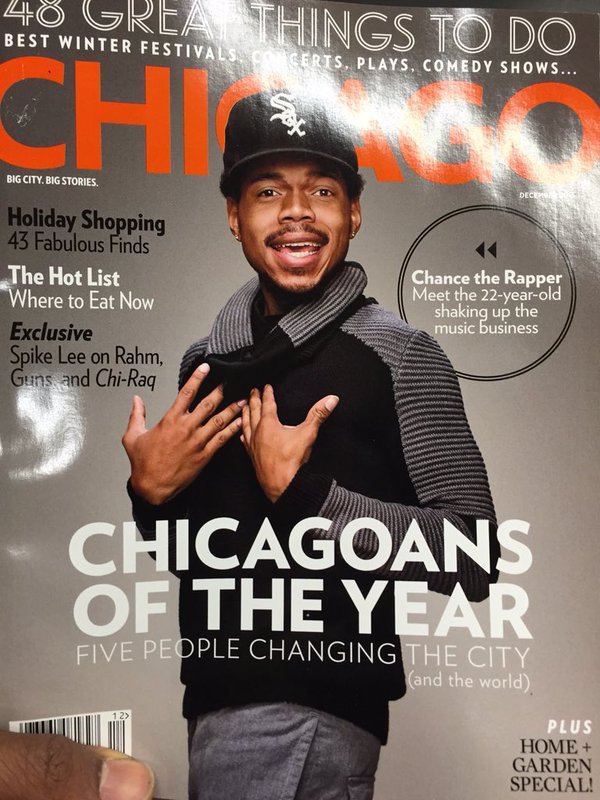 Летом этого года Chance The Rapper устроил шоу на Pitchfork Music Festival в Чикаго (с церковным хором, мальчиками-барабанщиками, дикими танцами и прочим весельем), после которого профильная пресса назвала его героем и главным чикагским артистом современности. После концерта парень укатил из Чикаго, но на родине его не забыли, и журнал Chicago Mag назвал парня человеком года.