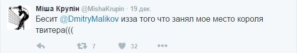 Кстати, не все довольны тем, что Дмитрий стал так внезапно популярен как минимум в твиттере, Миша Крупин, например, негодует: