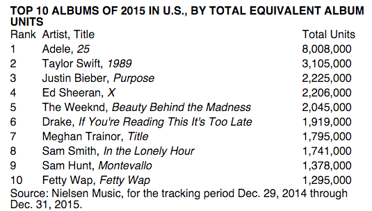 Как выглядит десятка самых продаваемых альбомов 2015 года
