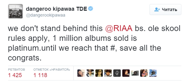 Новые правила вызвали спорную реакцию. Например, глава лейбла TDE Энтони Тиффит назвал новые правила читерством и попросил всех придержать поздравления, пока альбом Кендрика действительно не дойдет до цифры в 1 млн. проданных копий.