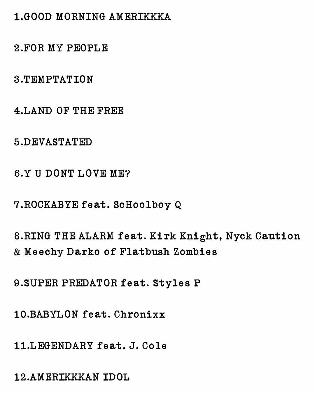 Второй сольный альбом Joey Bada$$ «All Amerikkkan Bada$$» выйдет уже меньше чем через месяц, и сегодня рэпер опубликовал его треклист.