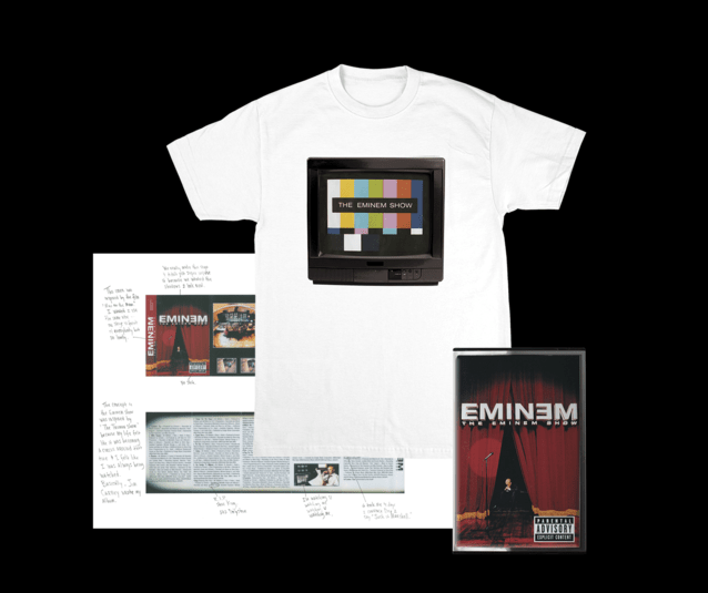 Обновлено (31.05.17): Как мы и предполагали в честь юбилея «The Eminem Show» Эминем выпустил небольшую капсульную коллекцию мерча. Так, на официальном сайте для заказа стали доступны три эксклюзивных предмета в самых разных комбинациях.