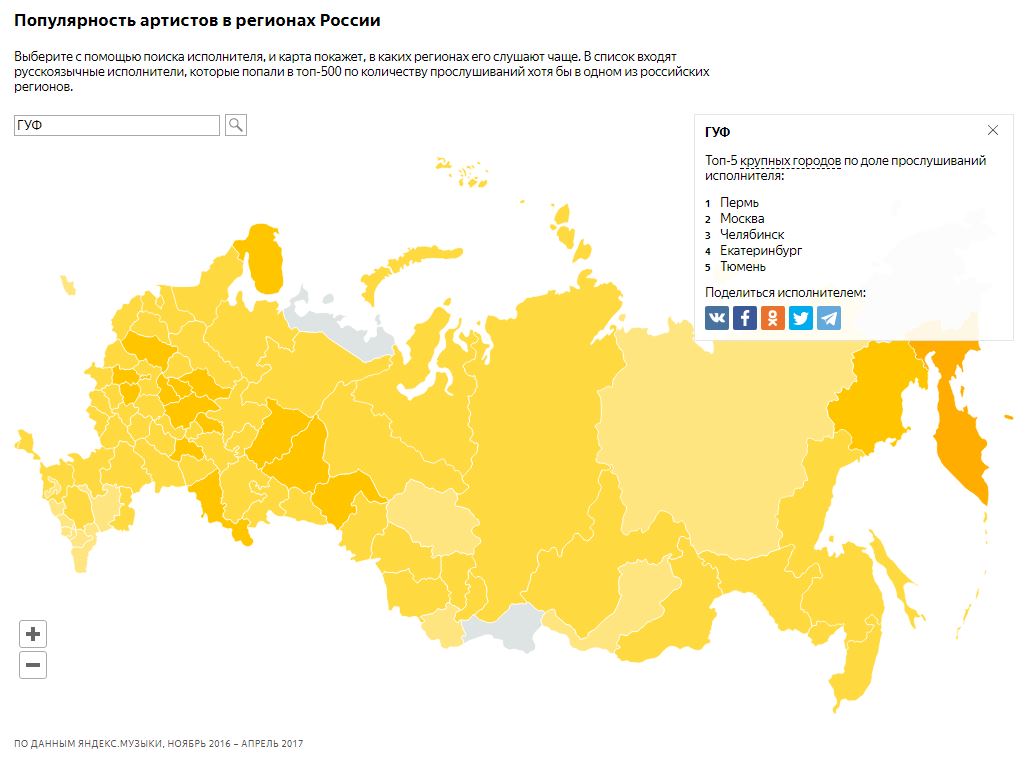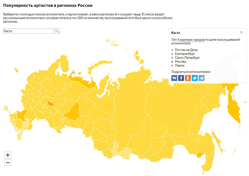 Яндекс составил карту музыкальных предпочтений России. Любят ли русских рэперов дома?