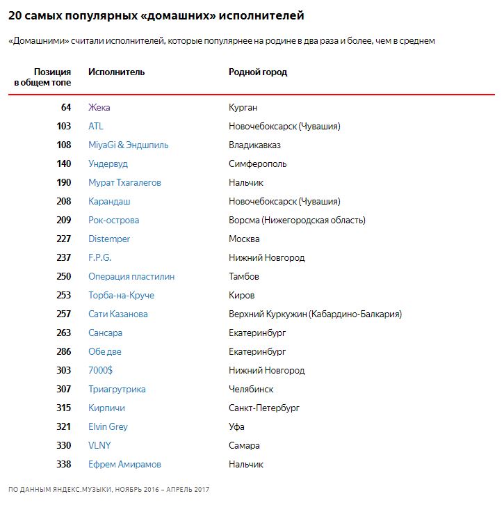 Вот так выглядит двадцатка самых «домашних» музыкантов России: