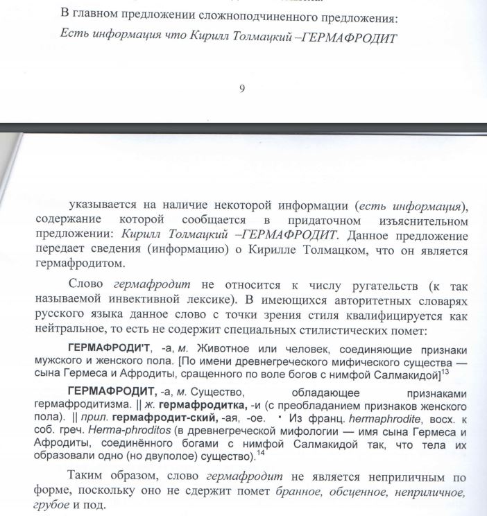 Специально для этих заседаний доктором филологических наук, профессором русского языка А.Н.Барановым были подготовлены две лингвистические экспертизы.
