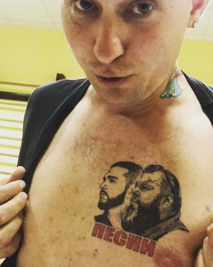 Участник шоу «Песни» сделал на груди татуировку с Тимати и Максом Фадеевым