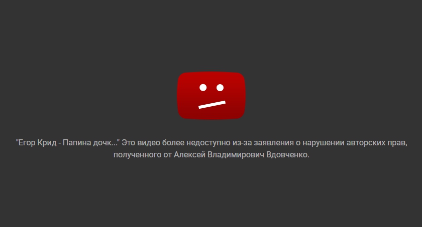 Клип Егора Крида «Папина дочка» удален с YouTube за нарушение авторских прав