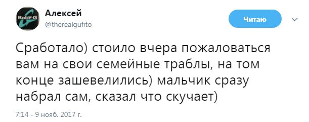 Утром Гуф удивленно написал, что эта тактика сработала — стоило написать о семейных проблемах в твиттер, как сын сразу позвонил Гуфу сам.