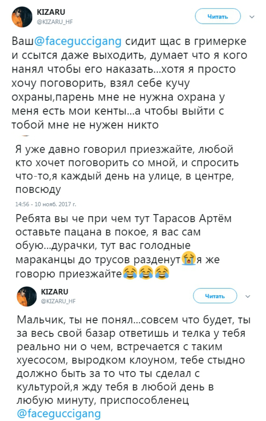 Вчера в своем твиттере Kizaru высказался в адрес девушки Face, блогерши Марьяны Ро.