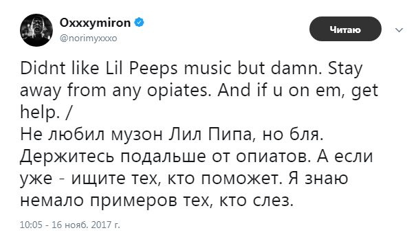Преждевременную кончину рэпер прокомментировал и Оксимирон: