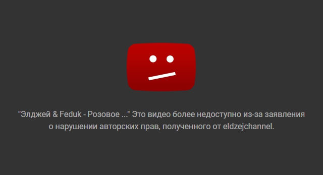 Два дня назад состоялась премьера красочного видео на хит «Розовое вино», авторами которого являются Feduk и Элджей. В клипе можно увидеть обоих исполнителей, вот только сегодня он пропал с YouTube, а причиной удаления указано «заявление о нарушении авторских прав, полученного от канала eldzejchannel (именно так называется официальный канал Элджея Sayonara Boy - прим.)».