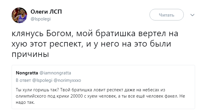 Несколько часов назад Олег ЛСП ретвитнул гневный комментарий в адрес оправданий Мирона, в котором содержались достаточно нелицеприятные слова и главный вопрос: «На каком языке с ними должны разговаривать пиарщики?». Олег тоже не остался в стороне и высказал свою точку зрения о поведении Окси: