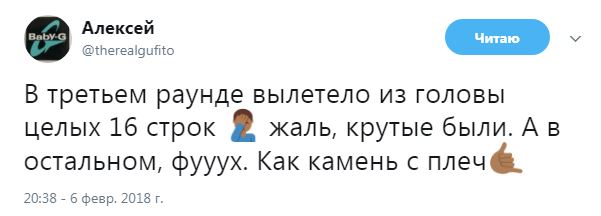 Недавно вероятный победитель прокомментировал баттл в твиттере: