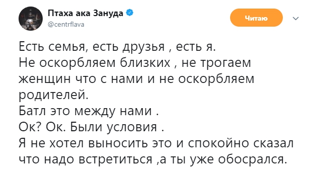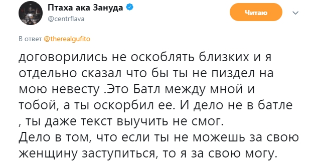 Птаха решил не оставаться в стороне и чуть позже прокомментировал сообщения Гуфа: