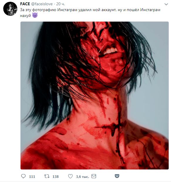 Также вчера Фэйс сообщил, что его инстаграм-аакаунт удалён из-за вот этого фото: