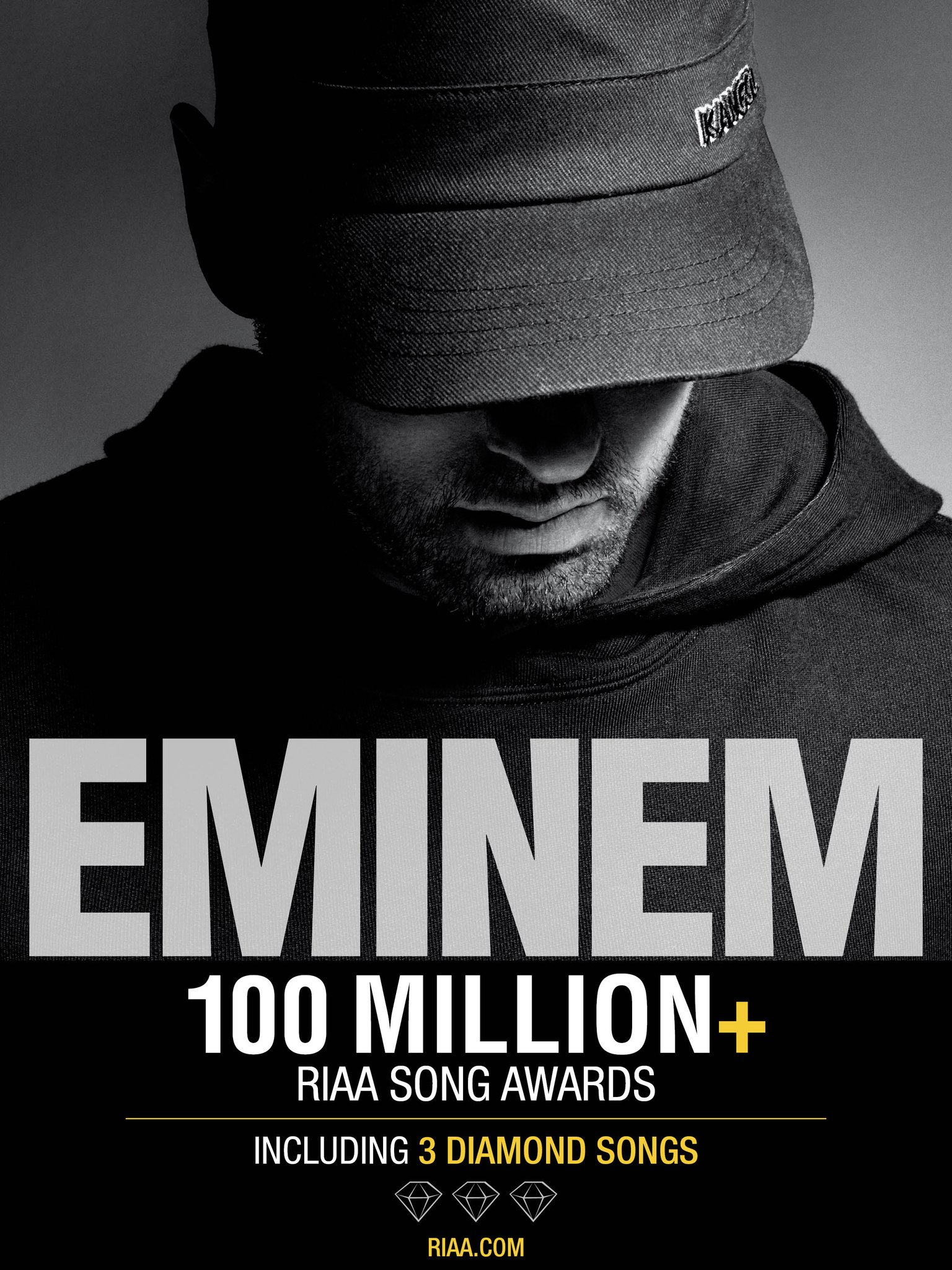 Также Американская ассоциация звукозаписывающших компаний (RIAA) поздравила Эминема с преодолением отметки в 100 миллионов (только вдумайтесь в эти цифры!) проданных песен. Всего на счету Маршалла 107,5 миллионов копий.