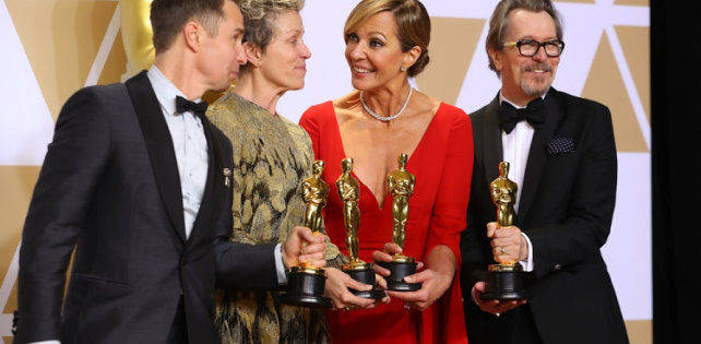 В ночь с воскресенья на понедельник состоялась 90-я церемония вручения премий Американской киноакадемии «Оскар», главным триумфатором которой стала картина Гильермо дель Торо «Форма воды». Лента получила четыре статуэтки, включая приз за лучший фильм и режиссуру. Также академики отметили актерский состав фильма «Три билборда на границе Эббинга, Миссури» – Фрэнсис МакДорманд стала лучшей актрисой, а Сэм Рокуэл получил приз за лучшую роль второго плана. А вот лучшим актером был признан Гэри Олдман за роль Уинстона Черчилля в ленте «Темные времена».