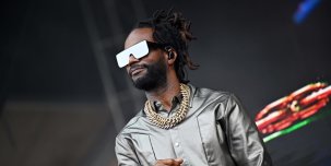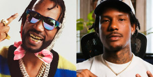 Черно-белый рэпер в очках и полосатом пальто — новый образ Juicy J для видео «Just Listen».
