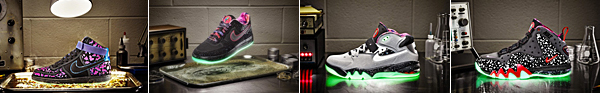 Эстетика фильмов о инопланетных мирах находит свое отражение как в классических силуэтах Nike Blazer Mid, Nike Vandal, так и в слегка преображенных моделях Nike Lunar Force 1, Nike Barkley Posite Max и Nike Air Force Max 2013. Добавьте сюда светоотражающие вставки и детали с фосфоресцирующим покрытием и перед нами очень интересный релиз, выпущенный к Матчу Всех Звезд NBA-2013.