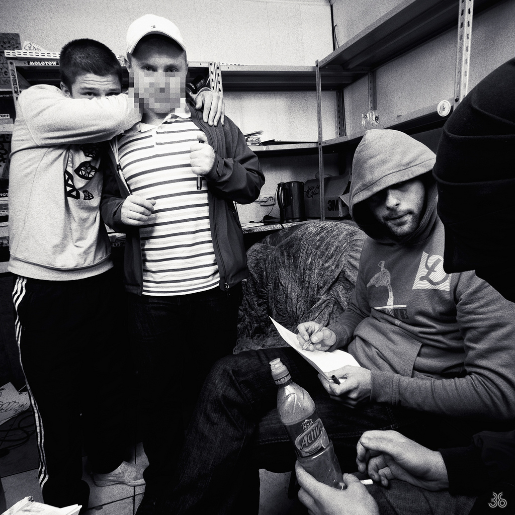Была история с Alchemist. Мы с ним первый раз познакомились в Чебоксарах на "Кофемолке", куда он приезжал вместе с Evidence. Я им тогда подарил каждому по своей майке, а потом случайно обнаружил, что Alchemist выступал в моей майке в Кельне. Уже потом он приехал в составе Gangrene вместе Oh No в клуб "16 тонн", и я через промоутера договорился о фотосессии. У меня была безумная идея — их первый альбом назывался "Gutter Water", и я хотел снять их в грязи. Я долго подготавливал жижу — мешал гуашь, землю, какой-то мелкий мусор. Но, когда Alchemist это увидел, он сказал "Нет, нет, нет! Ты псих!". Решили сделать просто портреты.