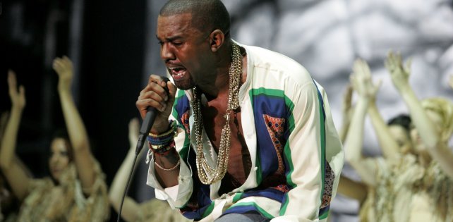 Канье чешет красными кроссовками пол, кликает по MPC, стоящему на маленькой колонне из Древней Греции, зазывает произнести тост в честь придурков и подонков да очаровывает зрителей командой балерин.