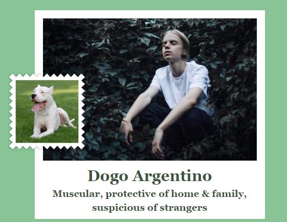 Самый красивый русский рэпер», мы принялись заливать в What Dog фотографии русских рэперов. Некоторые и правда очень похожи, и, что интересно, сходство есть не только внешнее, некоторые черты характера, присущие собакам, вполне можно примерить на музыку, которую делает тот или другой артист. К примеру, Ассаи и Карандаш – добродушные золотые ретриверы, что вполне подходит как для поучительного и насквозь морального рэпа Влади, так и для милахи и своего в доску Карандаша. Или вот Скриптонит, например – немецкий дог, которого характеризуют словом «мощный». Лучшего описания для звучания Скрипа, наверное, и не придумаешь! «Мастерски защищает дом» – ещё бы! Дом с нормальными явлениями... Или вот Ант – сибирский хаски! Смотрите-ка, даже с местом рождения угадали – Ант же из Западной Сибири, из Омска. Конечно, иногда программка капитально промахивается – где, например, в довольно худом Фараоне они увидели «muscular»?