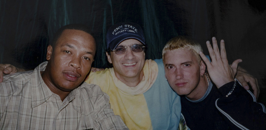 Dr. Dre, Джимми Айовин, Эминем на вечеринке в честь релиза «The Slim Shady LP»