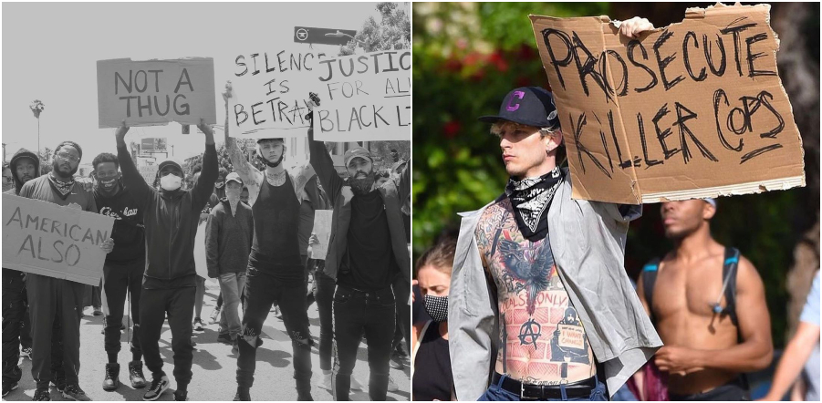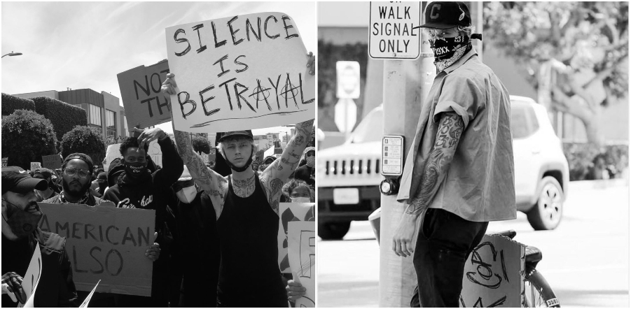 В Лос-Анджелесе среди протестующих можно заметить Machine Gun Kelly. Рэпер участвует в демонстрациях с плакатами вроде «Молчание — предательство» и заодно высказывается о происходящем в социальных сетях.