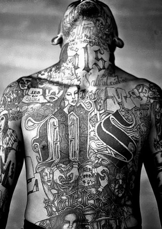 В бандах, как и в армии, всегда была чёткая иерархия. Даже банальные наркоторговцы, не говоря уже об убийцах, делятся на подгруппы от самого мелкого Pusher’а, то есть сбытчика товара (от жаргонного англ. To Push – загонять, толкать, продавать), через барыгу до дельца или даже барона. Классификация убийц начиналась с Shooter’ов (шутеров – стрелков) до Heavy Guns – людей с оружием больши́х калибров, у которых нет-нет, да и ракетный комплекс дома завалялся. Единственной причиной, почему банды до сих пор не могут отладить свой бизнес на ВСЕ 100%, – это высокая степень разобщённости, подкреплённая и вечной конкуренцией, и отсутствием полноценной дисциплины, и желанием быстрой наживы всех и каждого, и большой долей жестокости за малейшую провинность. Так, уже небезызвестная нам MS-13 практиковала отрезание части тела в дар своему господину. Чаще всего отрезались соски, ушные раковины и пальцы, причём осуществить процедуру отрезания и подарка должен был сам наказанный, признавая тем самым и свою вину, и силу вышестоящего авторитета. Стоит, однако, признаться, что подобные практики существовали и в Японии, и на Ближнем Востоке, и ещё много где, но ведь MS-13 пошла дальше: всех своих “солдат” банда обязывала “украшаться” полным комплектом из устрашающих тату – покрывались головы и лица, глазные веки и даже губы изнутри, головы брились налысо, а одежда издалека показывала, кто стоял перед тобой.