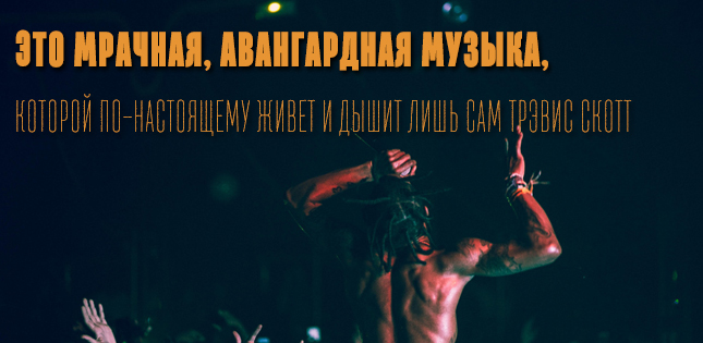 Дебютная пластинка Трэвиса удивляет с первых секунд, когда слушателя встречает не гулкий бит, а вступительная речь T.I., предстающая потусторонним оммажем на «Man On The Moon». И по ходу прослушивания это ощущение лишь усиливается. Перед нами уже не просто набор треков, объединенных лишь общим авангардным звучанием – а история пути Жака Уэбстера (настоящее имя рэпера), молодого бунтаря, мечтателя из Хьюстона, который пришел в этот мир, чтобы совершить настоящую музыкальную революцию. Если наполненный дымом шаттл в голове Кади, который питал его полное боли разбитое сердце, уносил нас в полет на близкую к нашей планете Луну, то разум Трэвиса устремляется к неизведанным еще горизонтам, прочь от Солнечной системы.