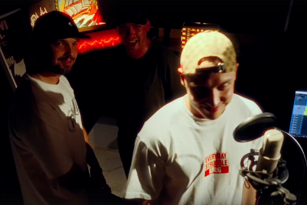 Три эмси в тесной студии и бум-бэп-бит veslo1 — старый стиль против глянцевого блеска, здесь сталкиваются параллельные курсы Саши и двух Максов, причем Pra(Killa’Gramm) предлагает фрагмент нового трека «Не перегорел» с альбома «Музыка для мужчин». Подробнее об этом релизе здесь.