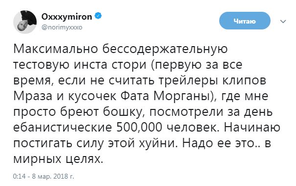 Первую инста-сторис Оксимирона за день посмотрело 500 000 человек